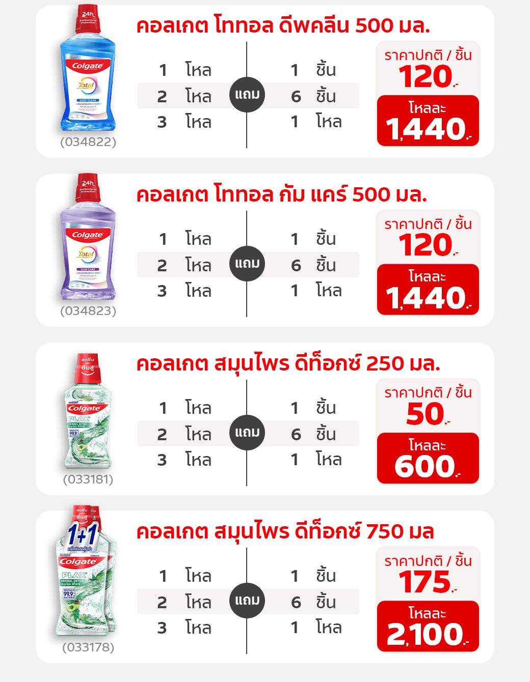 รายละเอียดโปรโมชั่น 12 ชิ้น แถม 1 ชิ้น รายละเอียดโปรโมชั่น 24 ชิ้น แถม 6 ชิ้น รายละเอียดโปรโมชั่น 3 โหล แถม 1 โหล